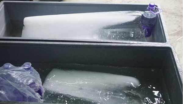 為車(chē)間送“清涼”:公司黨支部、安委會(huì)協(xié)同工會(huì)每天在生產(chǎn)車(chē)間不同區(qū)域放置冰塊以降低溫度,為一線員工送去絲絲清涼。